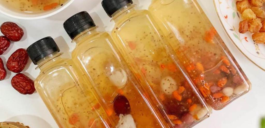 Bước 4: Đợi cho chè nguội, bạn cho ra bát hoặc để vào chai thủy tinh rồi bảo quản trong ngăn mát tủ lạnh để Dùng thử dần.